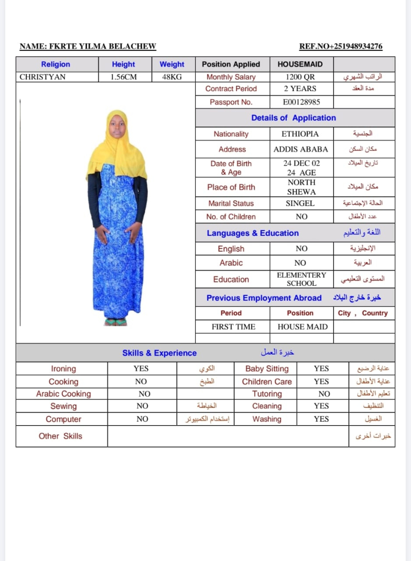 | مدة العقد : 2 YEARS | مكان الميلاد : NORTH SHEWA |