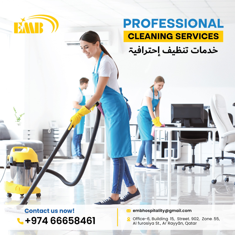 خدمات التنظيف والضيافة EMB لدينا أفضل العمال والعاملات في التنظيف بأسعار جيدة أفضل خدمات التنظيف نحن نقدم أفضل خدمة تنظيف اتصل بنا اليوم لتحديد موعد التنظيف الخاص بك على WhatsApp 66658461